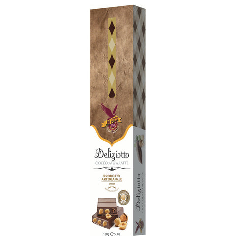 Deliziotto Milk Chocolate Bar with Hazelnuts is a chocolate unlike anything we find on a grocery shelf. Real hazelnuts from Avellino blend with quality milk chocolate that is sure to satisfy any craving. A chocolate lover’s delight, this is one chocolate bar unique to Italy that you just have to try to believe.