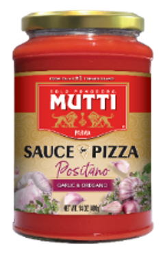 Mutti Positano Pizza Sauce, like all of Mutti’s pizza sauces is inspired by recipes typical of an Italian city. For the Positano variety, the sun ripened Italian tomatoes are enhanced with garlic and oregano. For an authentic tasting pizza, great sauce is key and it needs the Italian sweet and perfectly ripe tomato flavor to be convincing. Mutti pizza sauce is ideal for crafting your own pizzas at home.