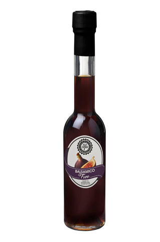 Fig Balsamic Condiment is an excellent blend of traditional balsamic condiment and ripe figs. From our friends at Acetaia Castelli, this is made from cooked grape must, 20% fig juice, and wine vinegar. It is sweet and the fig flavor is a delightful complement. This is excellent over a salad. For a wonderful appetizer or dessert that is not too sweet, try this with sliced figs and ricotta cheese. It is also delicious on top of gelato, chocolate cake, and other desserts.
