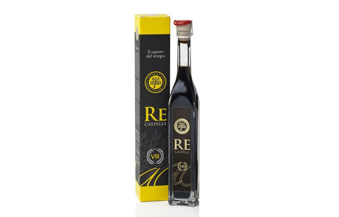 Re Castelli VIII condiment brings an extra layer of fruitiness to the rich, intense, sweetness of a quality balsamic with just enough sourness to beautifully balance its flavors. The cooked Lambrusco must is aged in barrels of 4 different types for about 8 years. It can last for up to 10 years due to its sugary content, but like its sister products from Acetaia Castelli, we doubt anyone could resist it for that long. Re Castelli VIII is wonderful with risottos, drizzled over a steak, fresh tomatoes, Mozzarella, and basil in a Caprese salad, or desserts like berries and gelato.