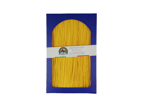 Our Maccheroncini Egg Pasta is a simple, thin spaghetti similar to “angel hair”. Fine, thin noodles are formed from only two ingredients, Durum wheat semolina and fresh eggs. The fine, thin strands need only a couple of minutes to cook to al dente perfection. They pair beautifully in many Roman dishes including Caccio e Pepe, Amatriciana, and Carbonara, as well as any spaghetti dish your heart desires. Our Maccheroncini pasta is slowly air-dried by the traditional method and may be the best pasta you have ever tasted! Cook time 2-3 minutes.