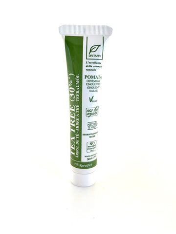 Organic Tea Tree Cream by Dr. Taffi is perfect for adults to babies and was created to protect the skin while soothing the itching, reddening, and irritations that are so common today. Our Tea Tree Cream contains 30% Tea Tree oil which will especially help those who experience eczema. Tea Tree oil is also well-known to help fight bacterial infections of the skin. Apply to affected area and massage in until completely absorbed. Can be used every day or just when needed. Organic, Vegan, & Nickel tested. Size: 50ml